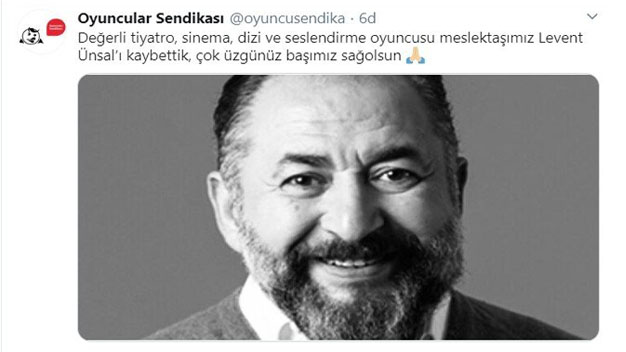 Usta oyuncu Levent Ünsal’a biz de canlitv.com ailesi olarak Allah’tan Rahmet ailesi ve sevenlerine başsağlığı diliyoruz.